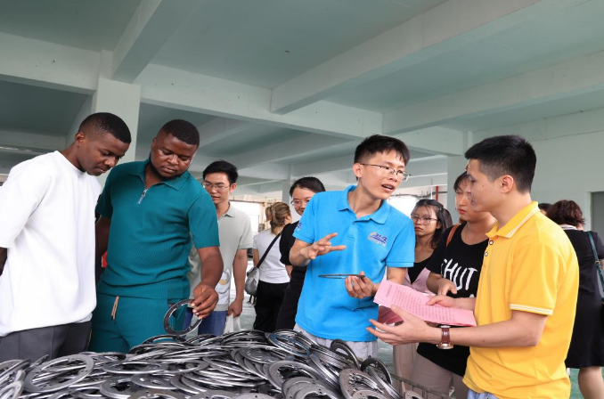 留学生们参观“玉商回归”企业广西汉光集团科技有限公司、广西百盛纺织有限公司,了解企业生产情况;到福绵十丈村调研了解民俗文化、乡村振兴及产业发展情况。参观期间,留学生们对玉林企业的自动化生产线及产品、乡村振兴及产业发展现状表现出浓厚的兴趣,全神贯注聆听工作人员的介绍讲解,纷纷举起手机记录所见所闻。