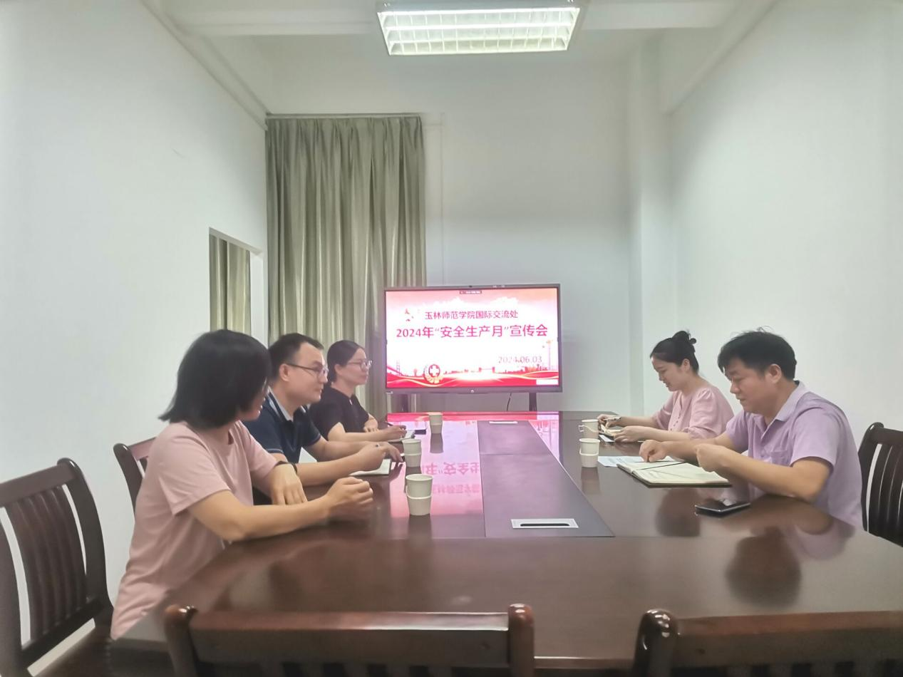 6月3日下午,国际交流处在文科楼409会议室召开“安全生产月”主题会议,会议由该处韦铁源处长主持,部门相关教师参加会议。