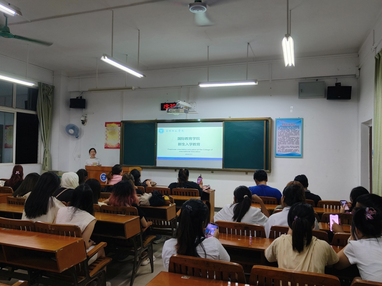 梁艺馨在新生入学教育中围绕法律法规、校纪校规、安全教育、心理健康教育等方面展开叙述,向新生们讲解相关的法律法规,提醒学生们要遵纪守法,筑牢内心安全准绳,切实保护好个人安全。并通过视频警醒学生特别注意各种形式的诈骗,维护自身安全及财产安全。此外,为初到中国的留学生可能出现的心理焦虑提供相应建议。
