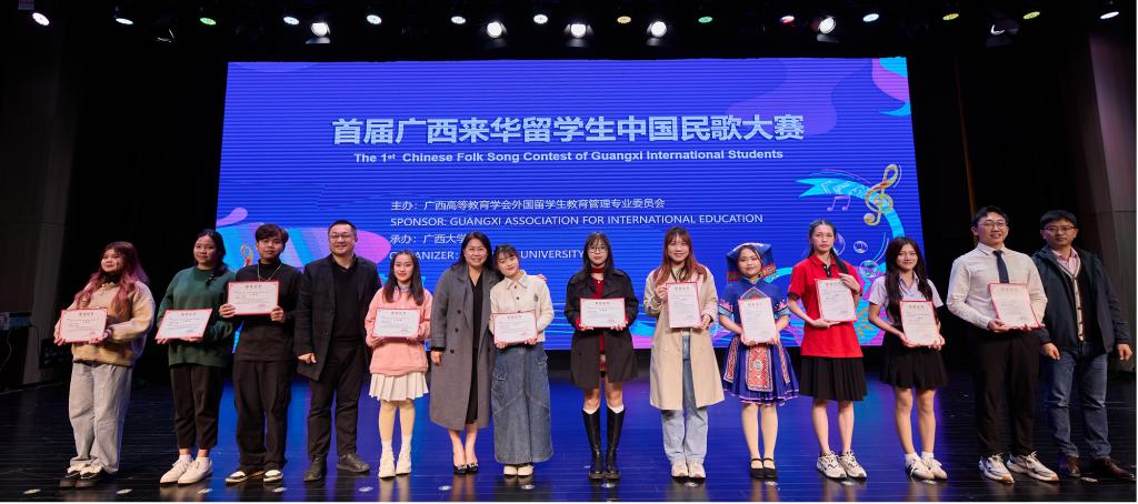 12月26日,由广西高等教育学会外国留学生教育管理专业委员会主办、广西大学承办的2024年首届广西167.nt必赢官网生中国民歌大赛顺利落下帷幕。经过初赛的严格筛选以及决赛现场的激烈角逐,167net必赢入口越南籍留学生范氏缘和阮日秋分别荣获大赛个人组二等奖和三等奖。167net必赢入口荣获该大赛优秀组织奖。